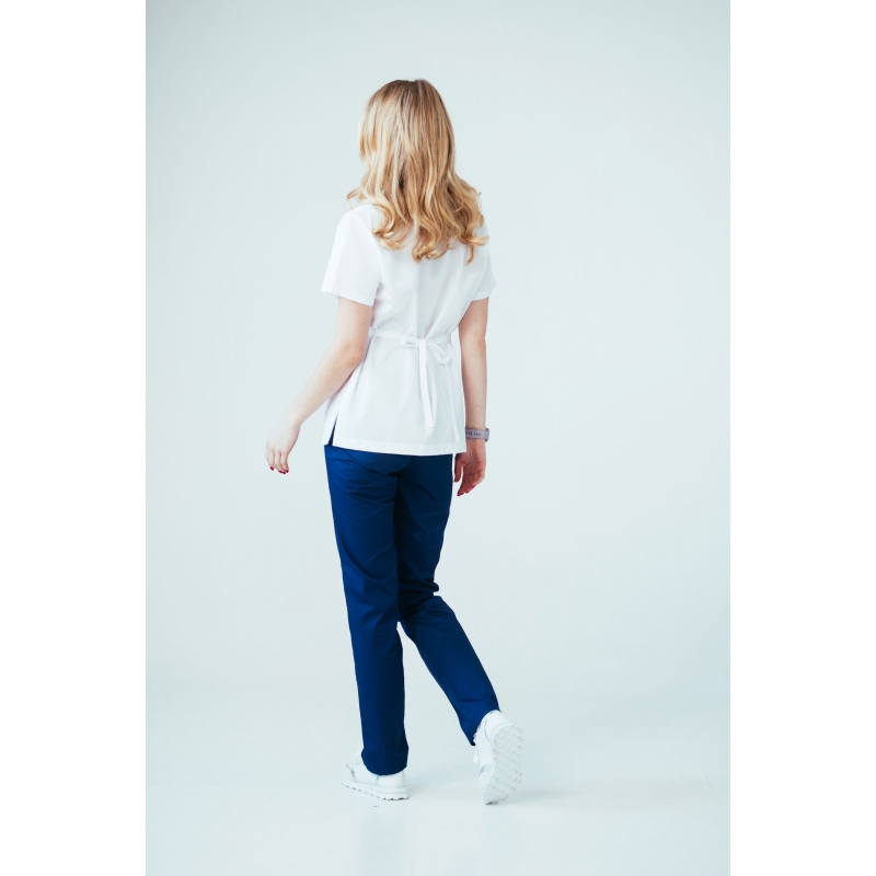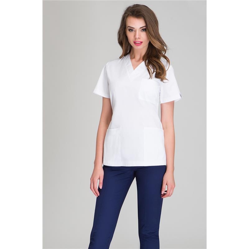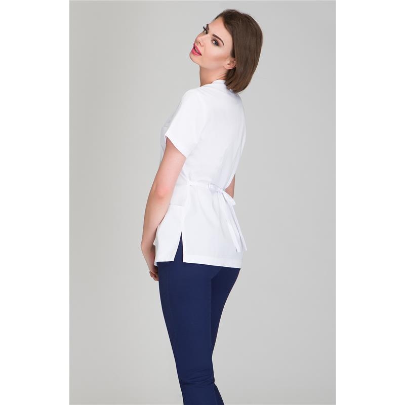 Meditsiiniline tööpluus valge paeltega taljel MB01 elastaaniga